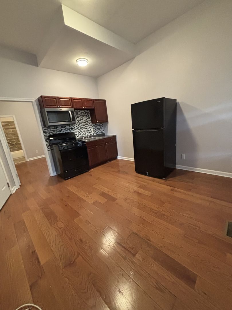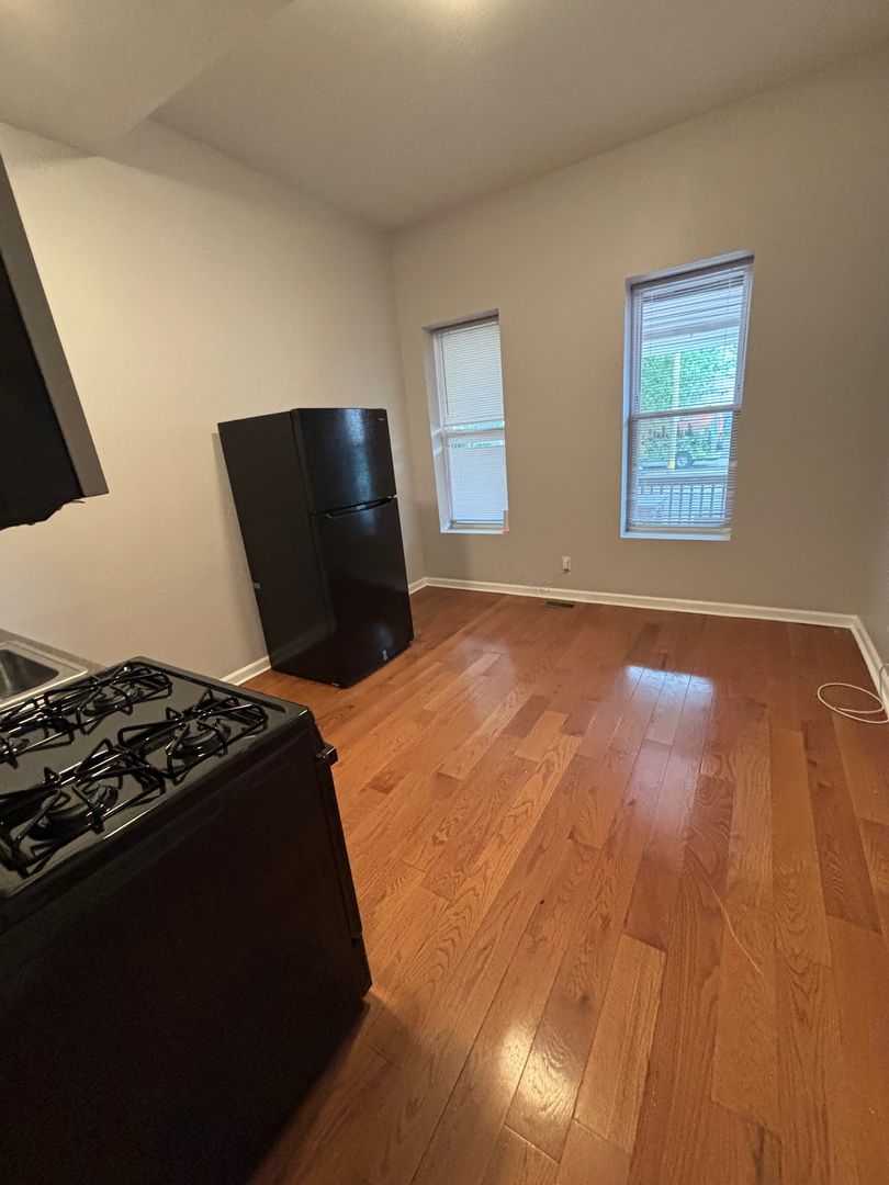 This bright and airy one bedroom apartment features beautiful hardwood floors, central heating and air conditioning, and a video door bell for added convenience. The galley kitchen offers a tiled mosaic backsplash, plenty of cabinets for storage, dishwasher, disposal, and gas stove. The open living room has tons of natural light and coat closet. The In the full bathroom you will find a tiled shower/tub combo and new vanity with storage. The generously sized bedroom will easily fit a queen sized bed, night stands, and also has a closet for storage.