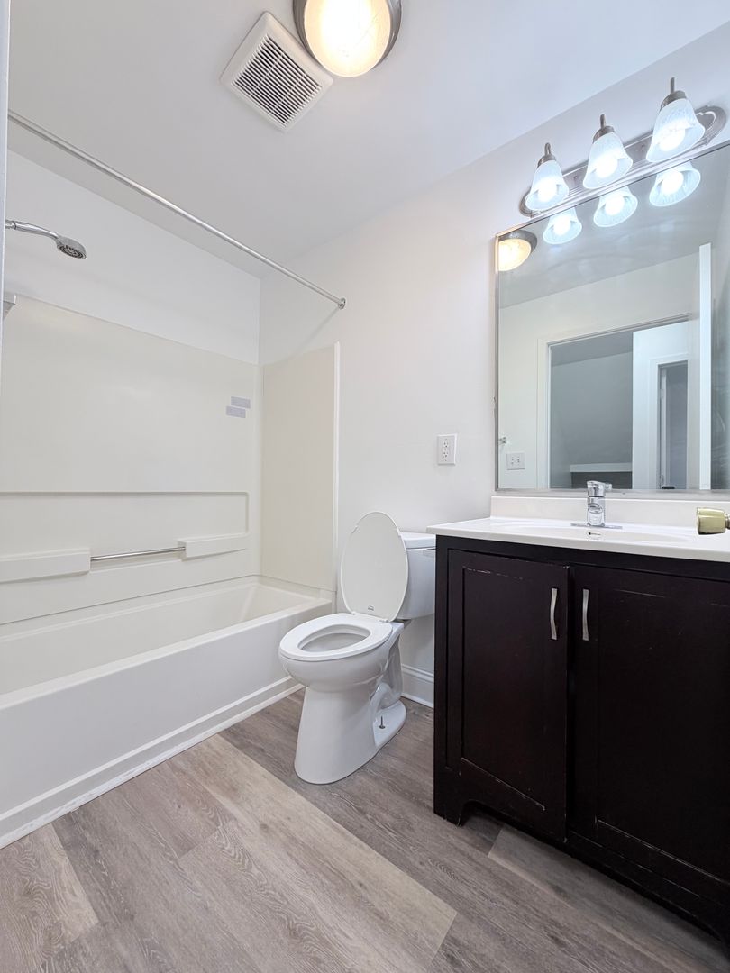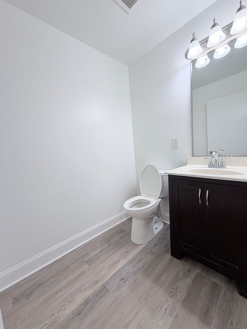 This bi-level three bedroom townhouse features hardwood floors throughout, central heating and air conditioning.