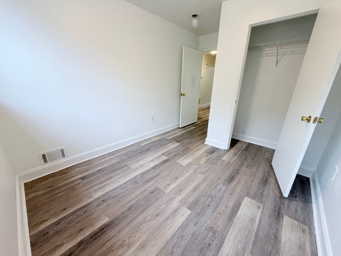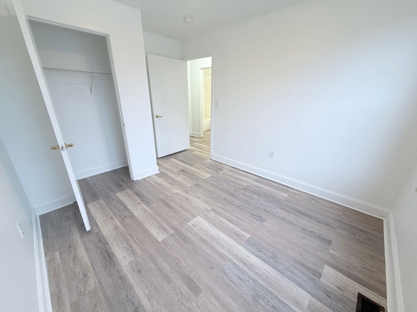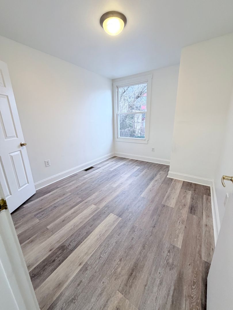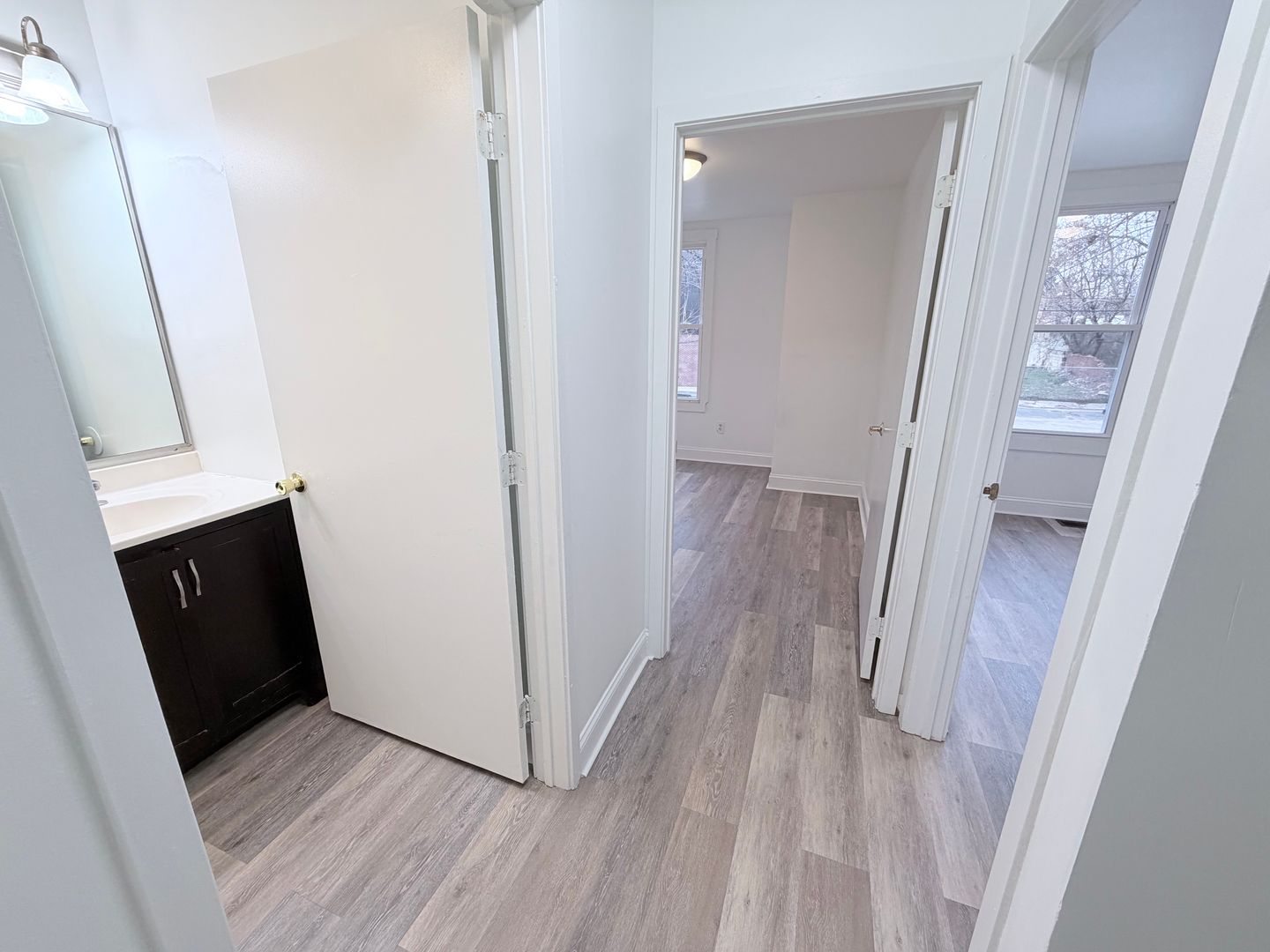 The second floor has the full bath with new vanity and shower/tub combo. Both bedrooms have tons of a natural light and a closet each.