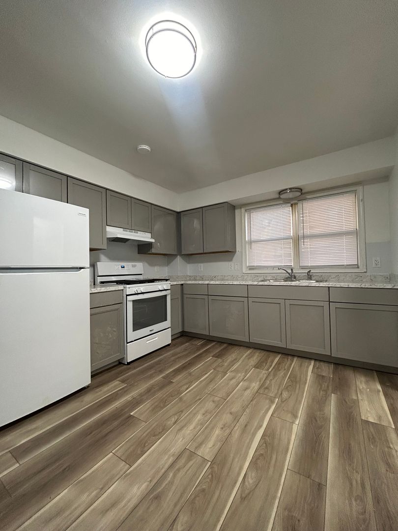 Enter into your spacious living and dining room. Plenty of space for couches, chairs, and a dining table. The wide-open kitchen offers tons of counterspace, numerous new cabinets for storage, and a gas stove. On the first floor you will also find a half-bath for added convivence. The basement provides in unit washer and dryer and space for extra storage.