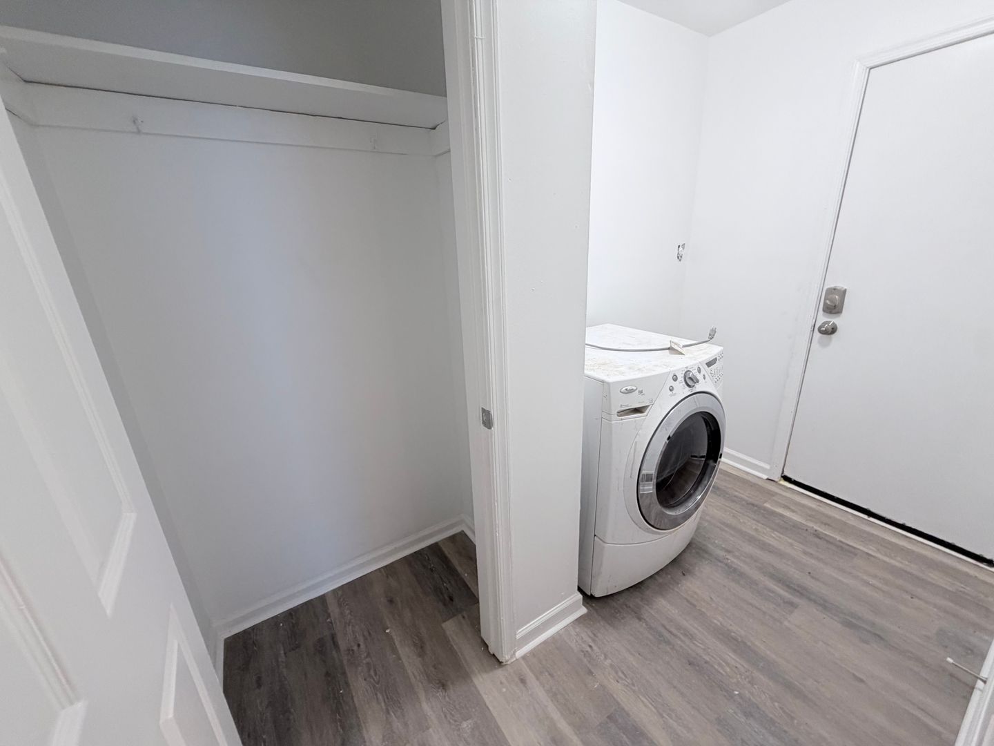 This home boasts a well-designed layout with two spacious bedrooms and a full bathroom, perfect for comfortable living. The kitchen is equipped with modern amenities including a dishwasher, making meal prep and clean-up a breeze. Adding to the convenience is an in-unit washer and dryer, saving you time and trips to the laundromat. The house also features central heating and air, ensuring your comfort in all seasons.