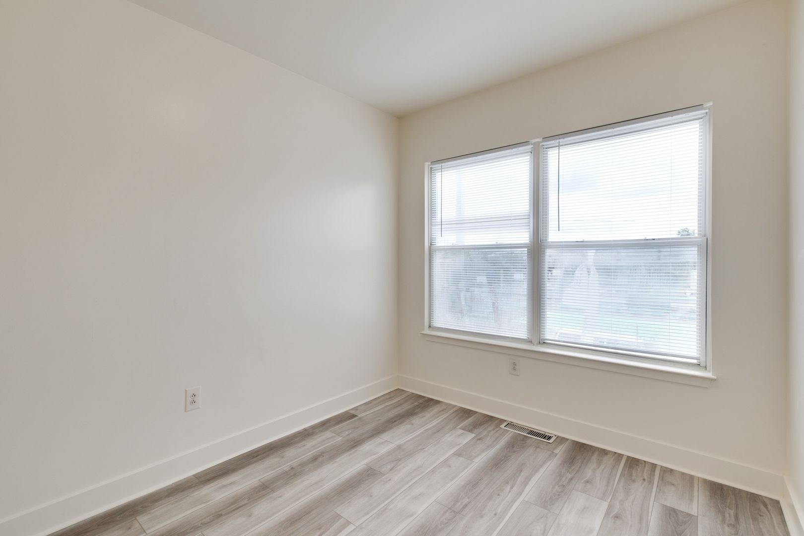 On the second floor you will find the laundry room, linen closet, and both bedrooms. The full bath has a new vanity and shower/tub combo. The first bedroom is located in the rear, has a closet, and can easily fit a queen bed. The master bedroom is very spacious and has an extra large double door closet for additional storage.